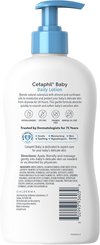 - Cetaphil Baby Daily Lotion: Specially designed to moisturize and protect baby’s sensitive skin from dryness.