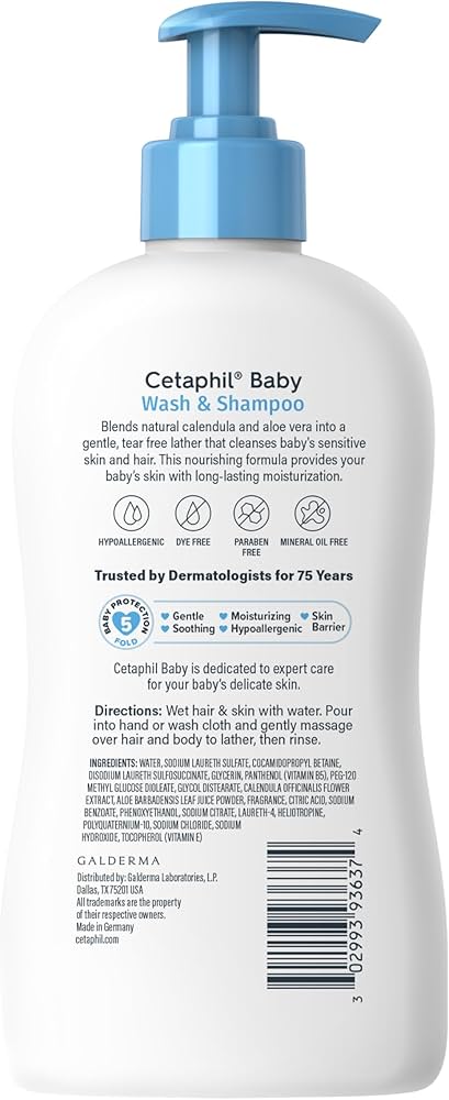 - CETAPHIL BABY WASH & SHAMPOO: This tear free formula blends into a rich lather to gently cleanse your baby’s delicate skin and hair leaving it soft and clean