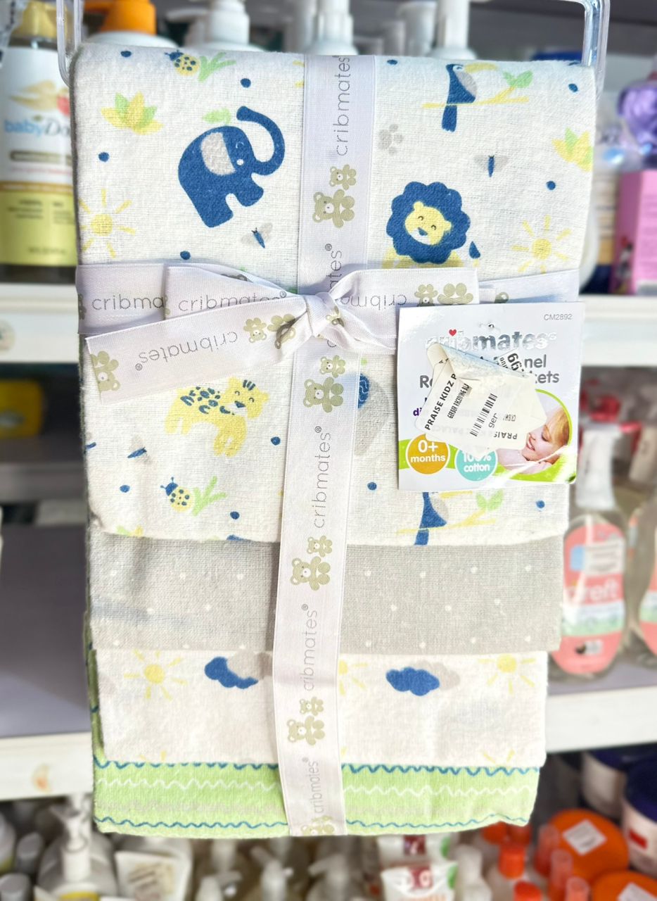 Cribmates 4-Pack Flannel Receiving Blankets are soft swaddling cloths designed for newborns.