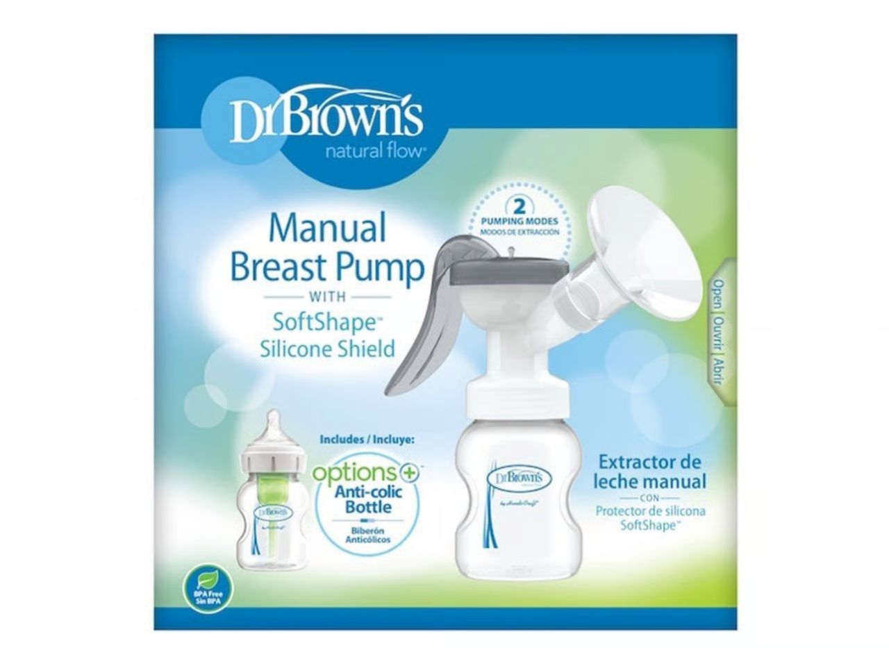 •This pack contains*: a manual breast pump, an Options+ anti-colic bottle, a slow-flow silicone teat and a travel cap.