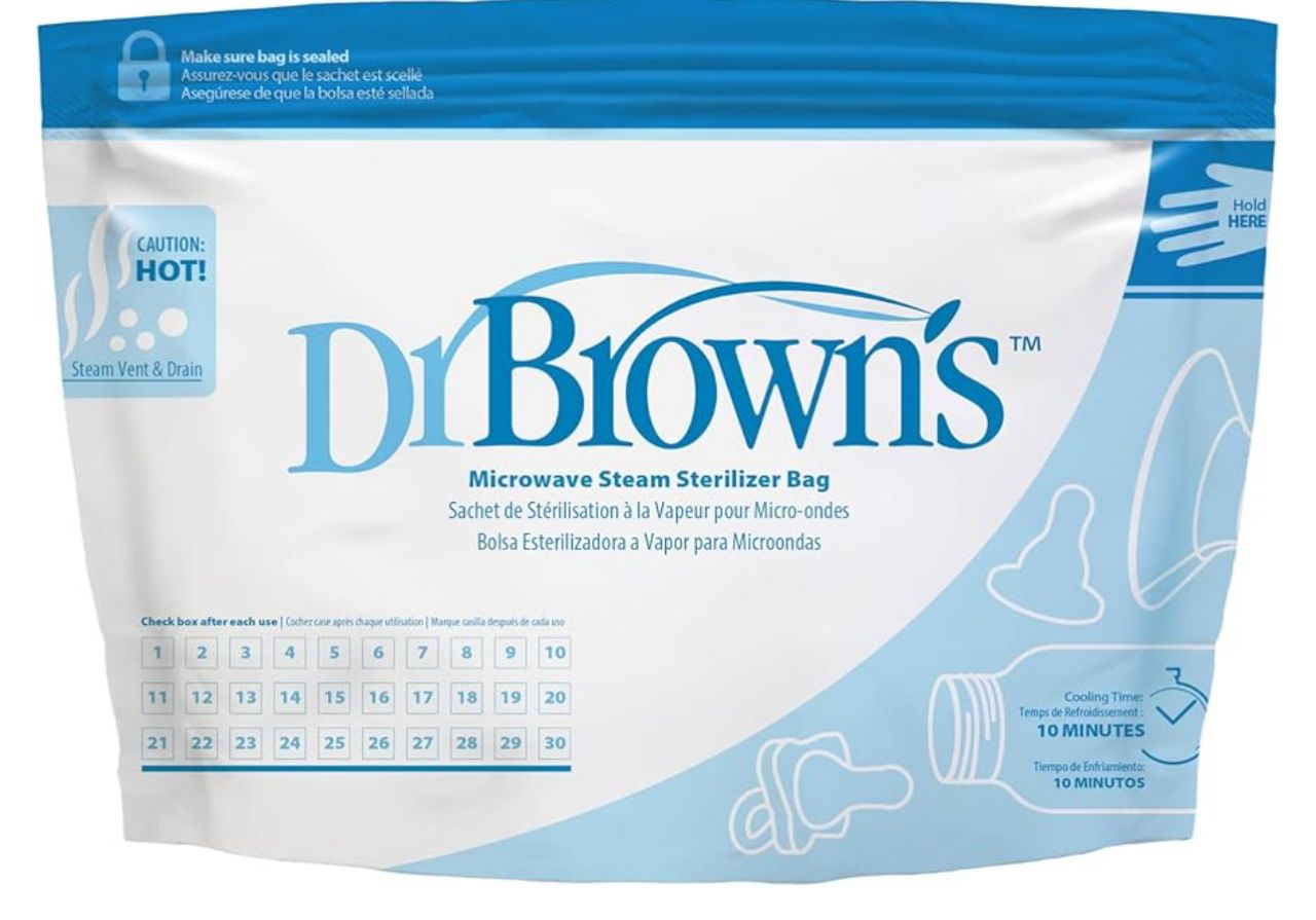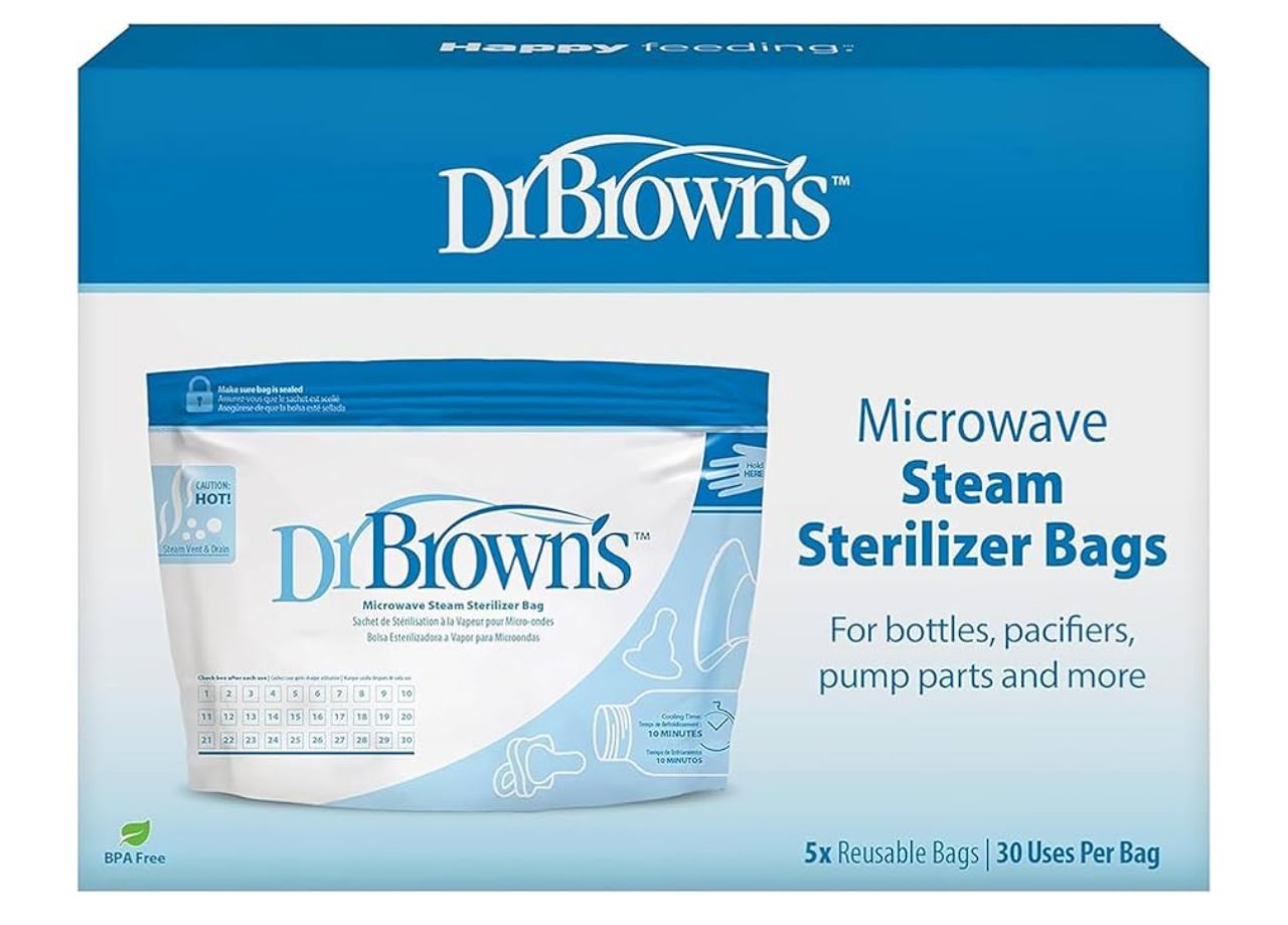 BABY BOTTLE STERILIZER BAGS. Steam sterilize baby bottles and accessories in as little as 90 seconds with this baby essential.
