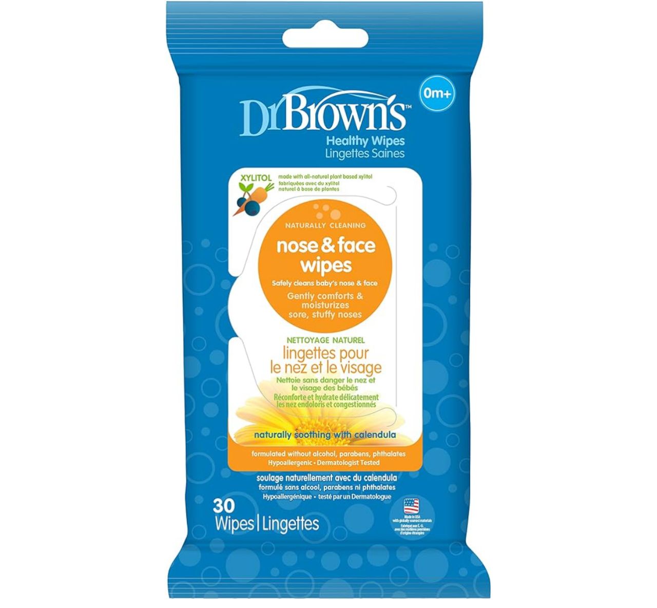 •BABY NOSE AND FACE WIPES. Gently clean and moisturize baby’s nose and face with Dr. Brown’s Nose and Face Wipes.