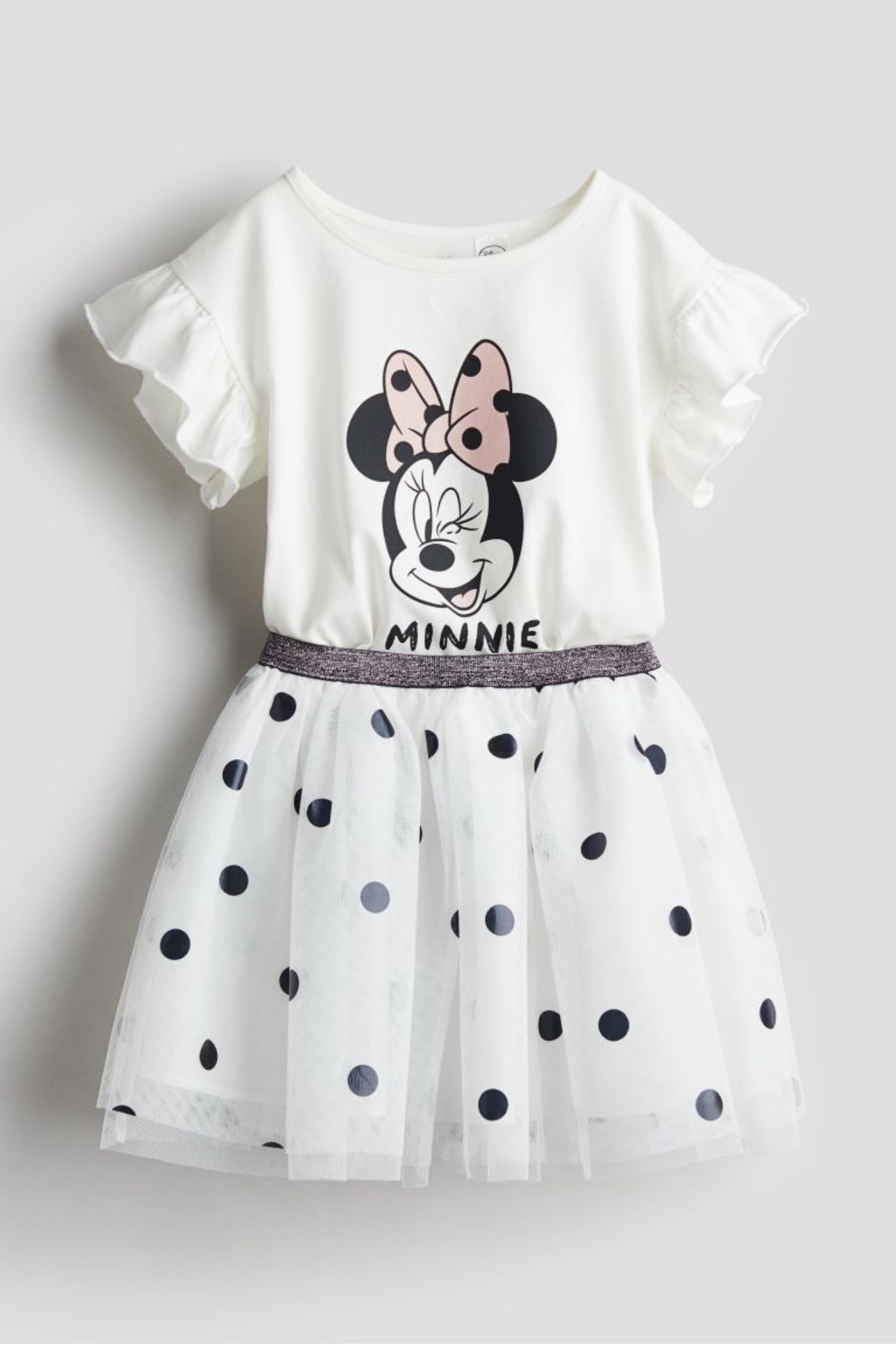 Set with a top in printed jersey and a coordinating skirt in double-layered tulle.