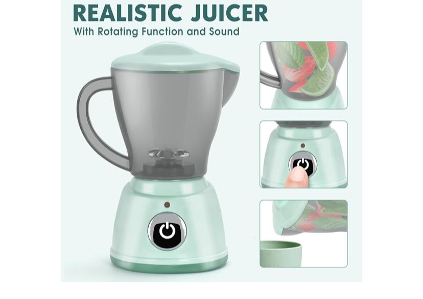 •The kids’ blender toy can mix eggs and flour to make real food. The juicer can rotate fruit and make it become juice. These interactive play toys allow kids to enjoy imaginative kitchen play like real cooking.