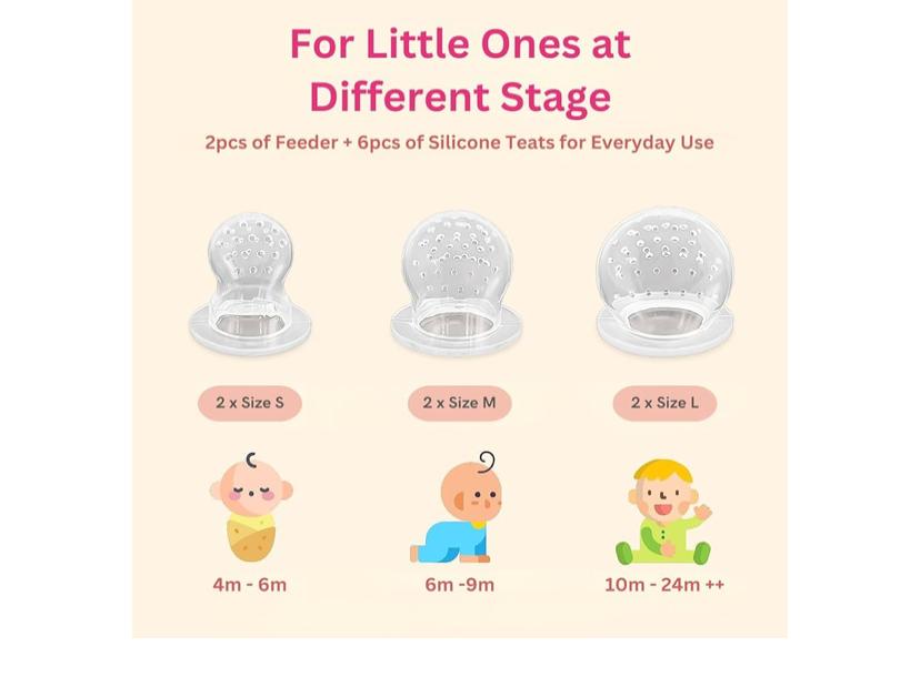 ★ MOST VALUE FOR MONEY BABY FRUIT / FOOD FEEDERS & TEETHERS (2 PCs w 4 Silicone Teats) – NatureBond Baby Fruit Feeders and Teethers are designed in “APPETIZING” candy-like colors that stimulate baby’s appetite for consumption of natural nutrients from fruits and vegetables. It is also a safe way to introduce our little ones to solid food while they go through weaning and teething phase. The All-IN-1 feeder can also soothe baby’s teething discomfort by massaging the gums through chewing.