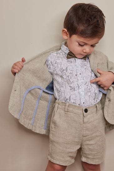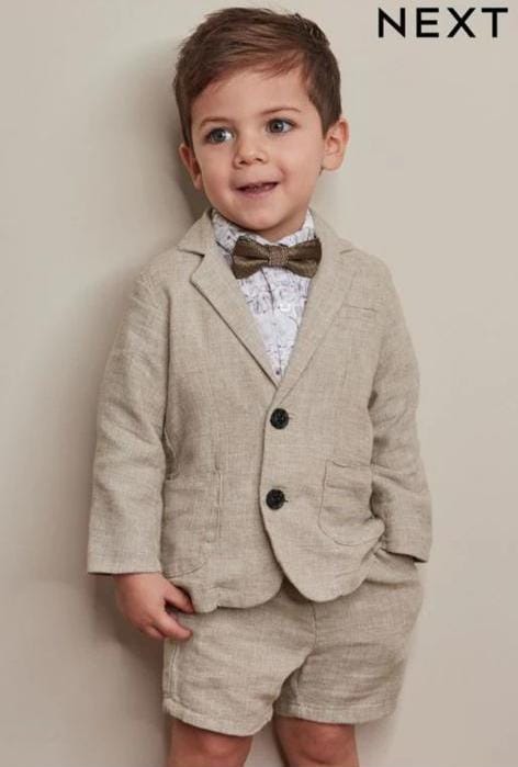 Jacket and Shorts 55% Linen, 45% Cotton. Shirt 100% Cotton. Bow Tie 100% Polyester.