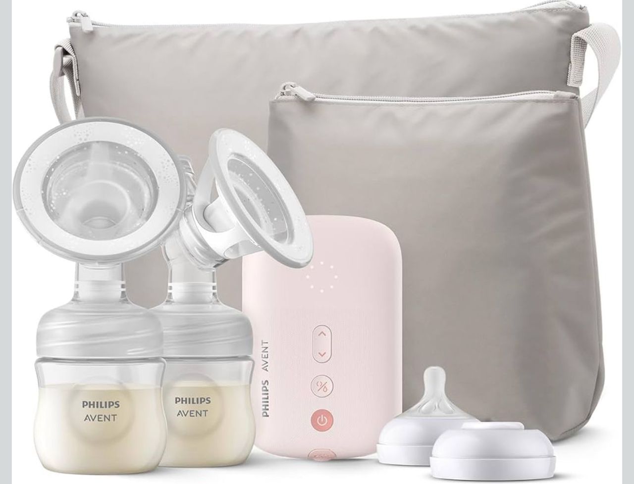 Includes: 1 double electric breast pump, 2 flanges, 2 4oz. Natural bottles with Natural Response nipple, 2 sealing discs, 1 travel bag, 1 insulated pouch, 1 pumping belt, 1 plug, 2 disposable breast pads.