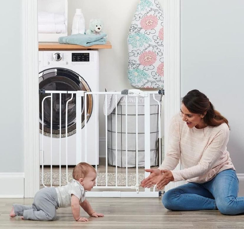 EXTRA WIDE SAFETY GATE FOR DOORWAYS & BOTTOM OF STAIRS Expands to Fit Openings Between 29-38.5” No Extension: 29-32″ 6″ Extension: 35.5-38.5″ Please Note: This Gate Will Not Fit an Opening Between 32”-35”, an Additional 4” Extension is Needed Stands 30″ Tall