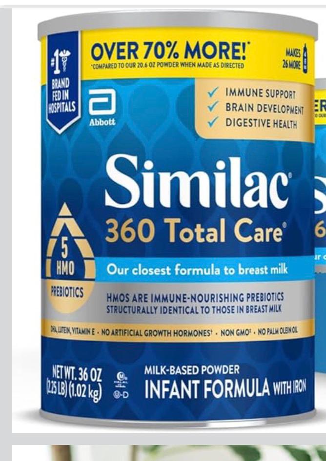 Be the first to review “Similac 360 Total Care Infant Formula, Has 5 HMO Prebiotics, Our Closest Prebiotic Blend to Breast Milk, Non-GMO, Baby Formula Powder, 36-oz”