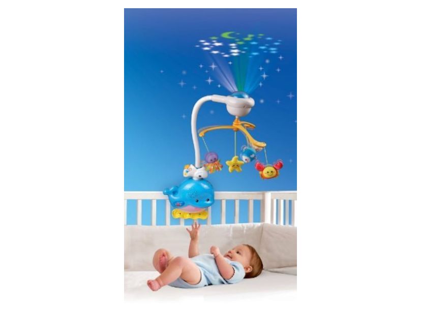 •Baby mobile projects calming ocean-themed graphics on the ceiling and plays long-lasting soft music; mobile lullabies lull babies to sleep